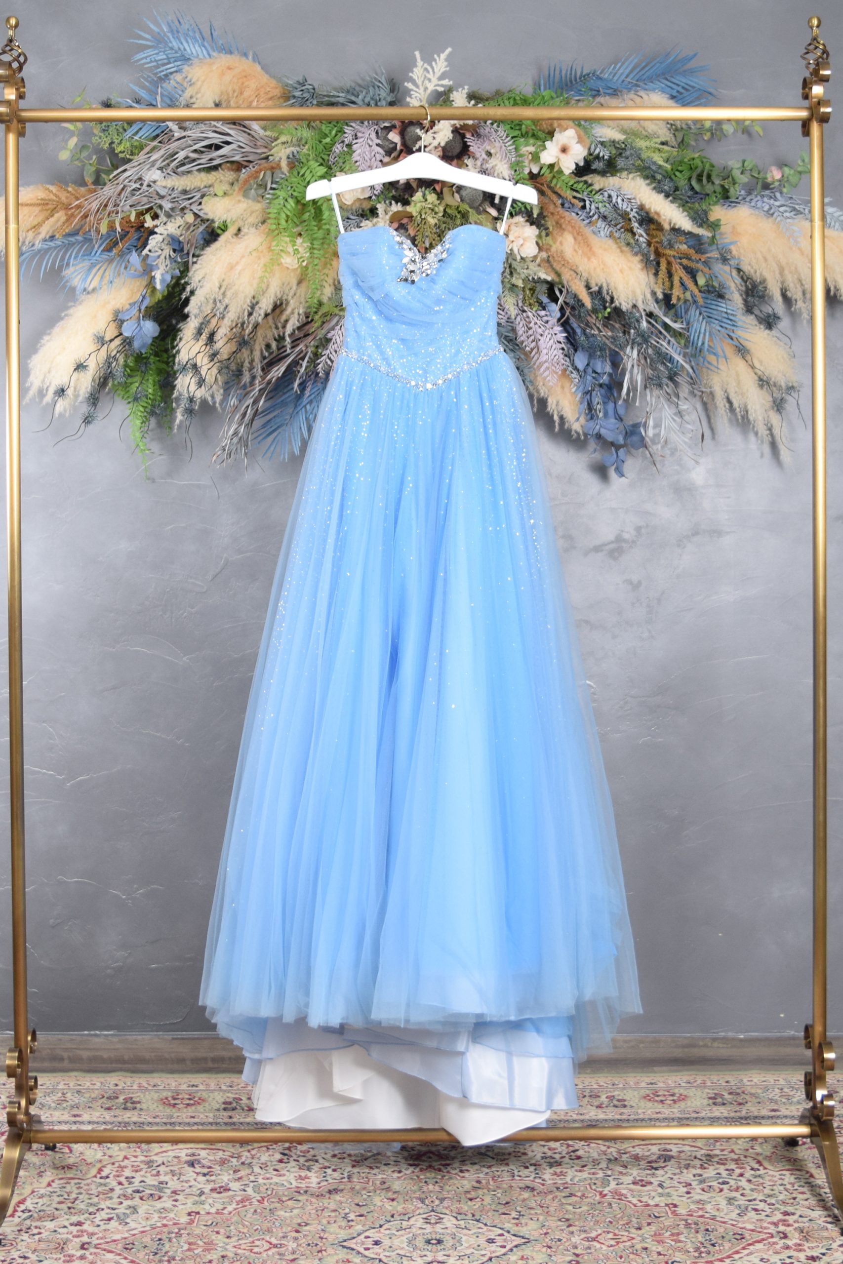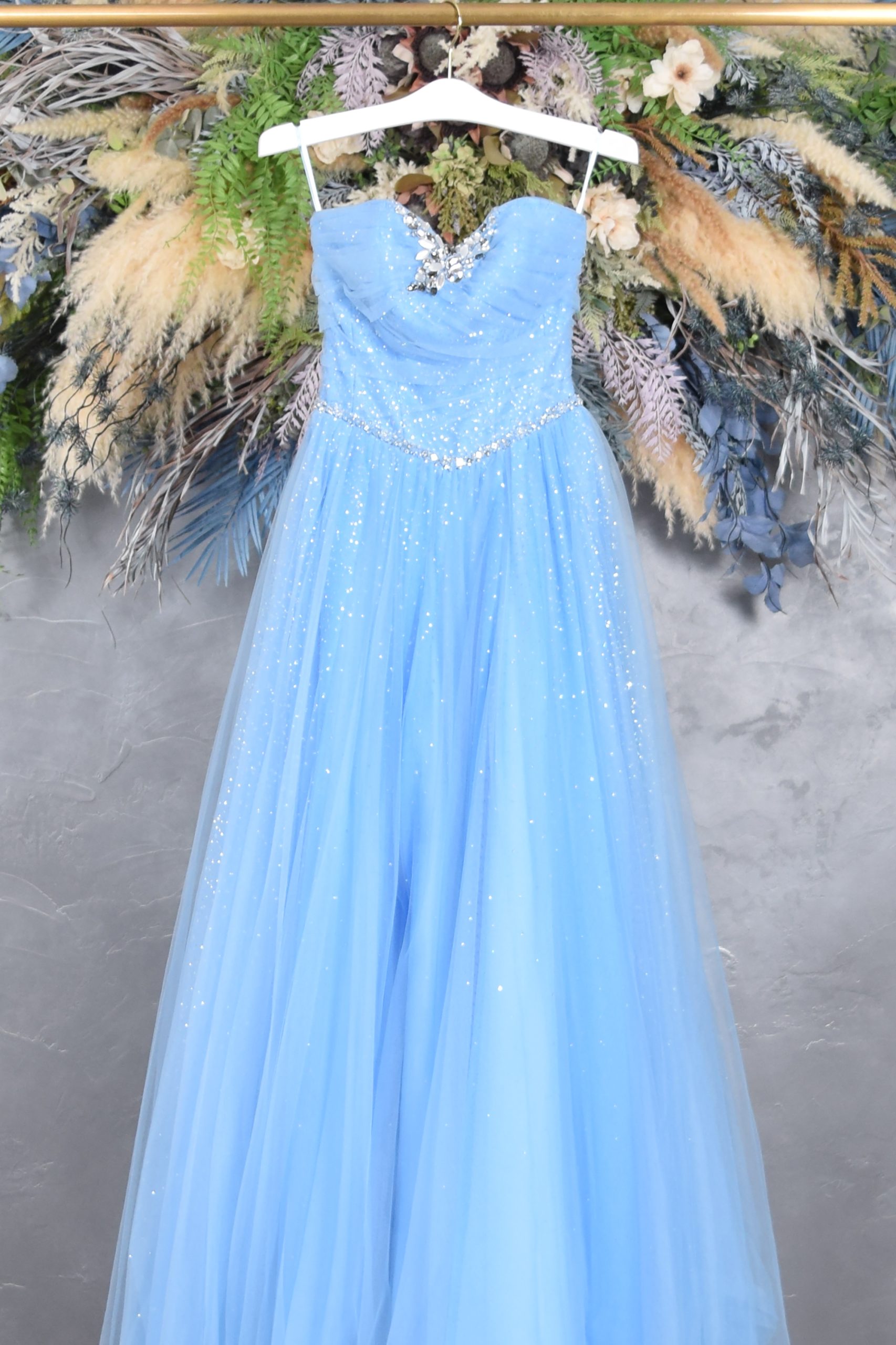 淡く透明感のあるスカイブルーのチュールドレス。